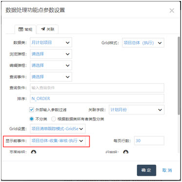 Grid行背景色配置是在 3000 功能點顯示前事件里完成的。系統發現我們在3000功能點配置了 顯示前事件,如下圖
