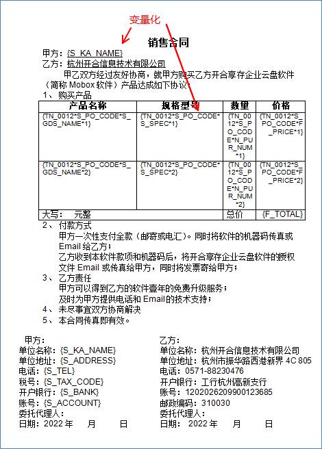 - 有開合信息公司的技術支持,幫助定義合同打印功能